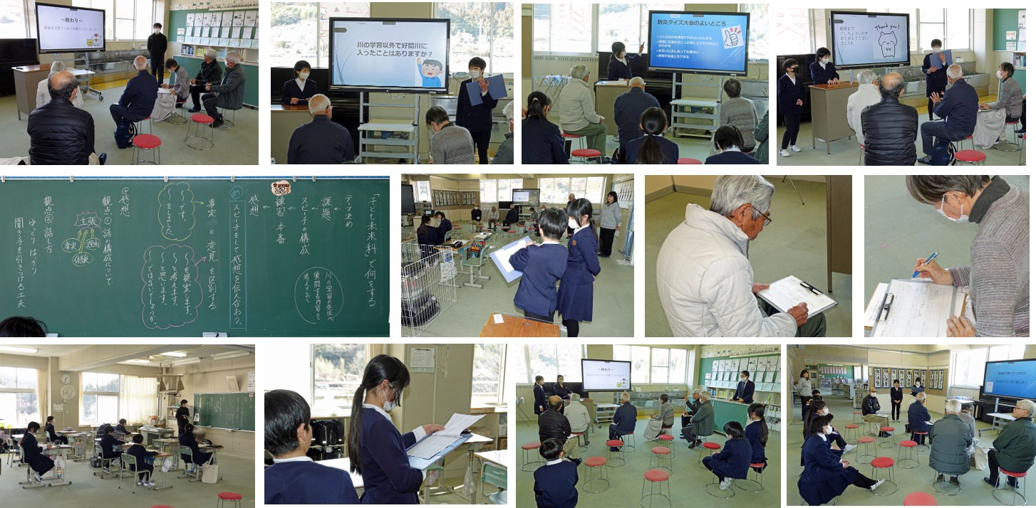 令和8年1月28日に好間四小で行われた学習成果発表の授業に参加した。この授業は、同校の5、6年生児童が今年度6月から当NPOが支援して進めてきた水環境・水生生物学習、水防災学習で学んだことを踏まえて、この流域で実践できる行動を児童自らが提案した内容を発表して感想を述べ合うというものであった。